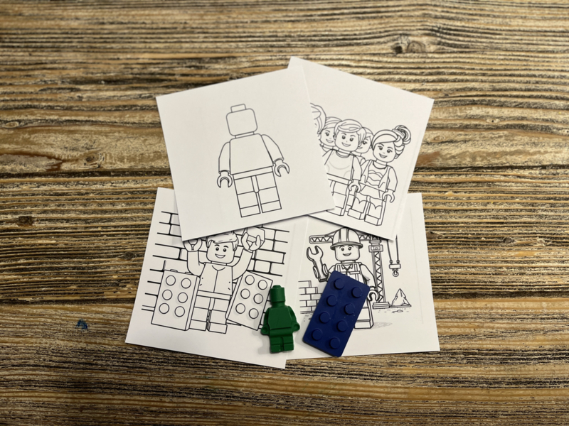 Een super leuk traktatiezakje met daarin 4 mini lego kleurplaaten en 2 krijtjes ivm een lego afbeelding. Deze zijn gemixt in de kleuren geel, blauw, rood en groen. In elk zakje zit een lego blokje en popje.