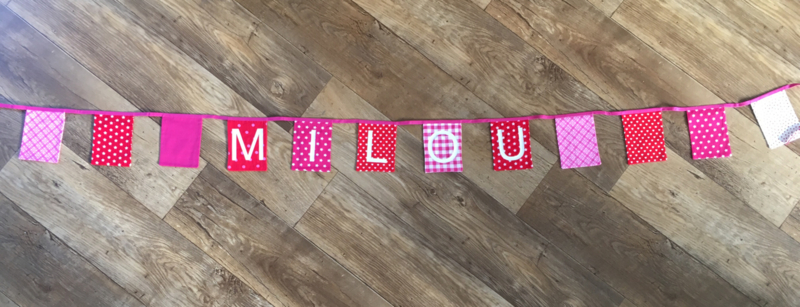 Super leuke vlaggenlijn in eigen kleur samen te stellen. Wat je op de foto ziet is een voorbeeld, ik ga namelijk aan de slag voor je als je het besteld hebt.