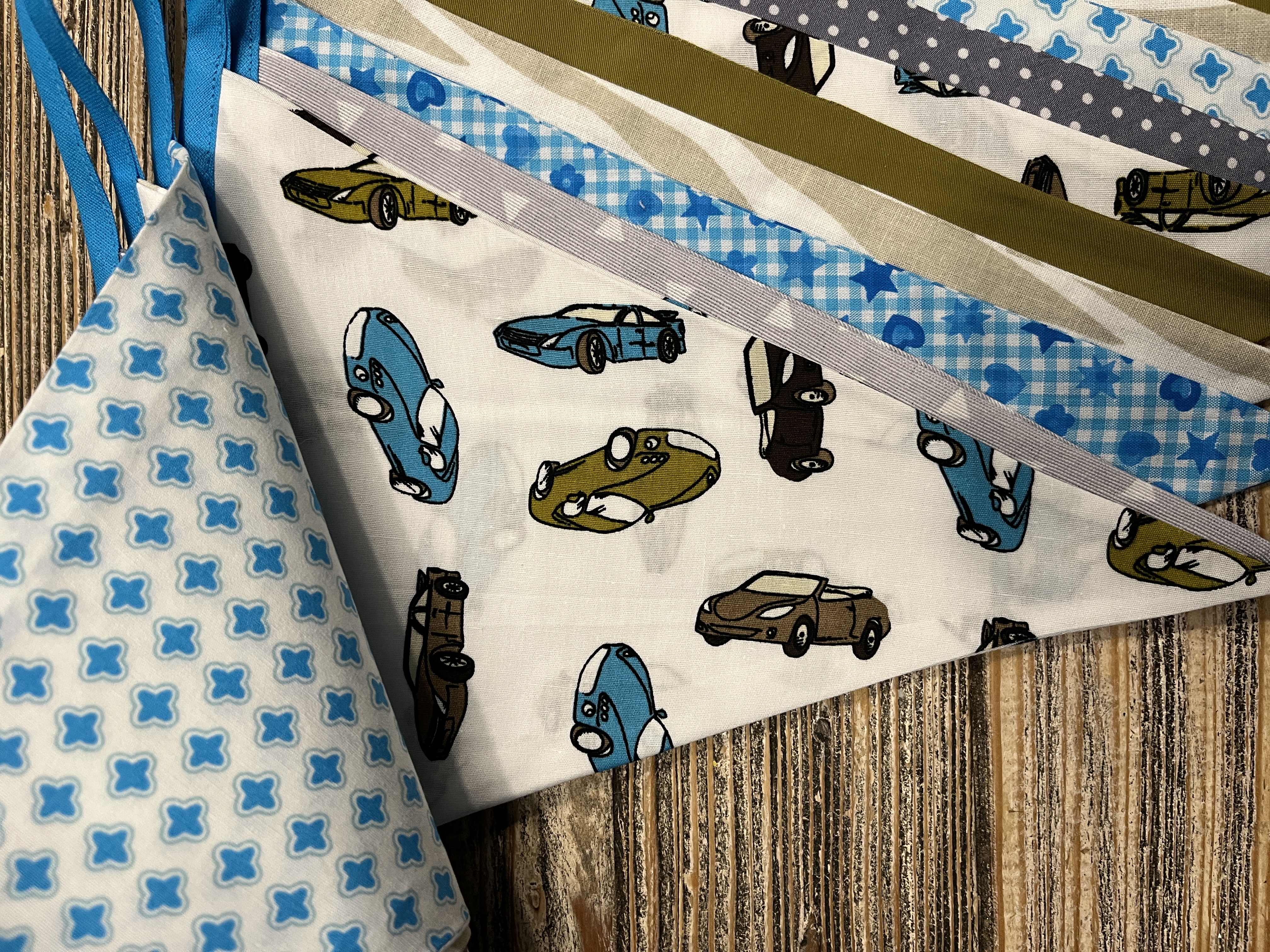 Super leuke vlaggenlijn in aqua/grijs/groen kleuren.