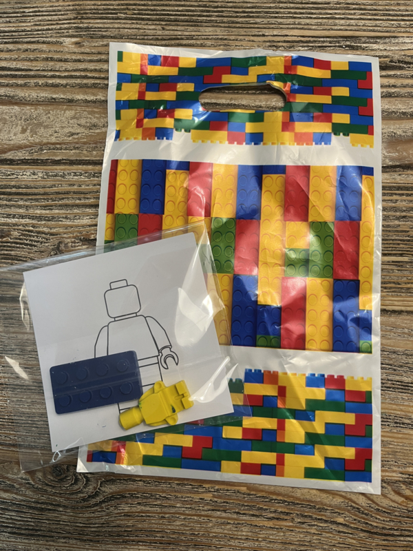 Een super leuk traktatiezakje met daarin 4 mini lego kleurplaaten en 2 krijtjes ivm een lego afbeelding. Deze zijn gemixt in de kleuren geel, blauw, rood en groen. In elk zakje zit een lego blokje en popje. Daarbij zit er een…